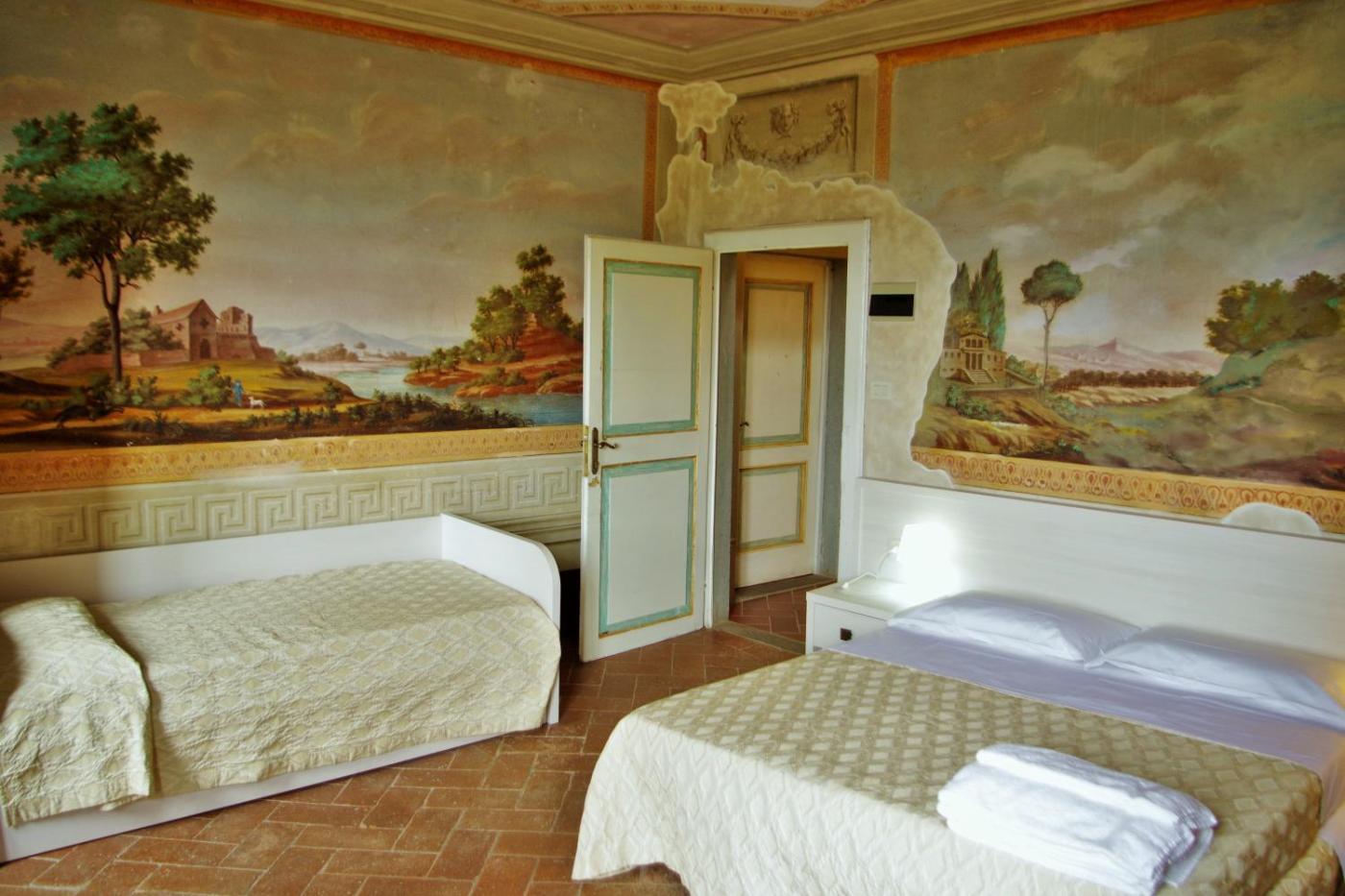 Camera Familiare. Camera situata allinterno di Villa Norcenni, una villa storica completamente ristrutturata. Questa sistemazione climatizzata offre una splendida vista e un servizio di couverture giornaliero. ;