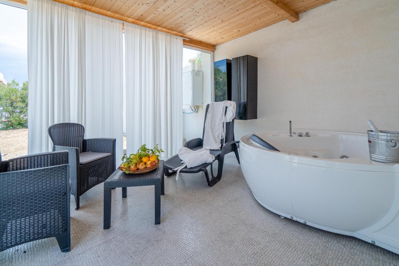 Presso questa villa potrete usufruire di una vasca idromassaggio. Villa Rosa con accesso sul mare mette a disposizione un’area giochi per bambini.